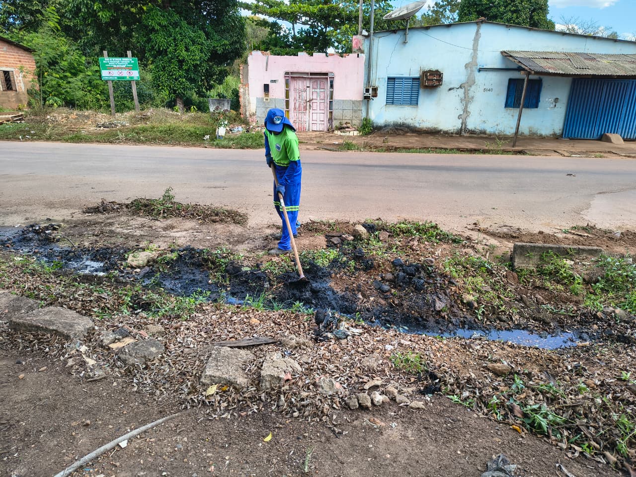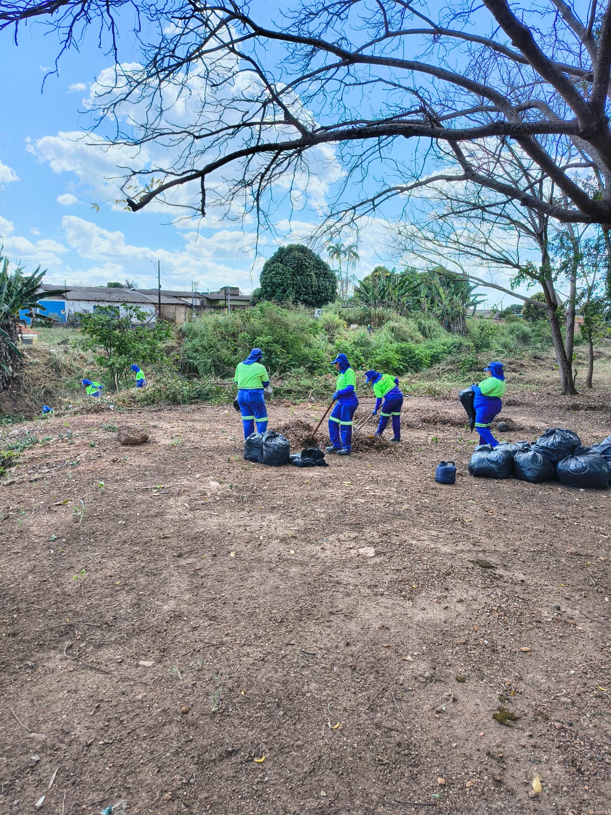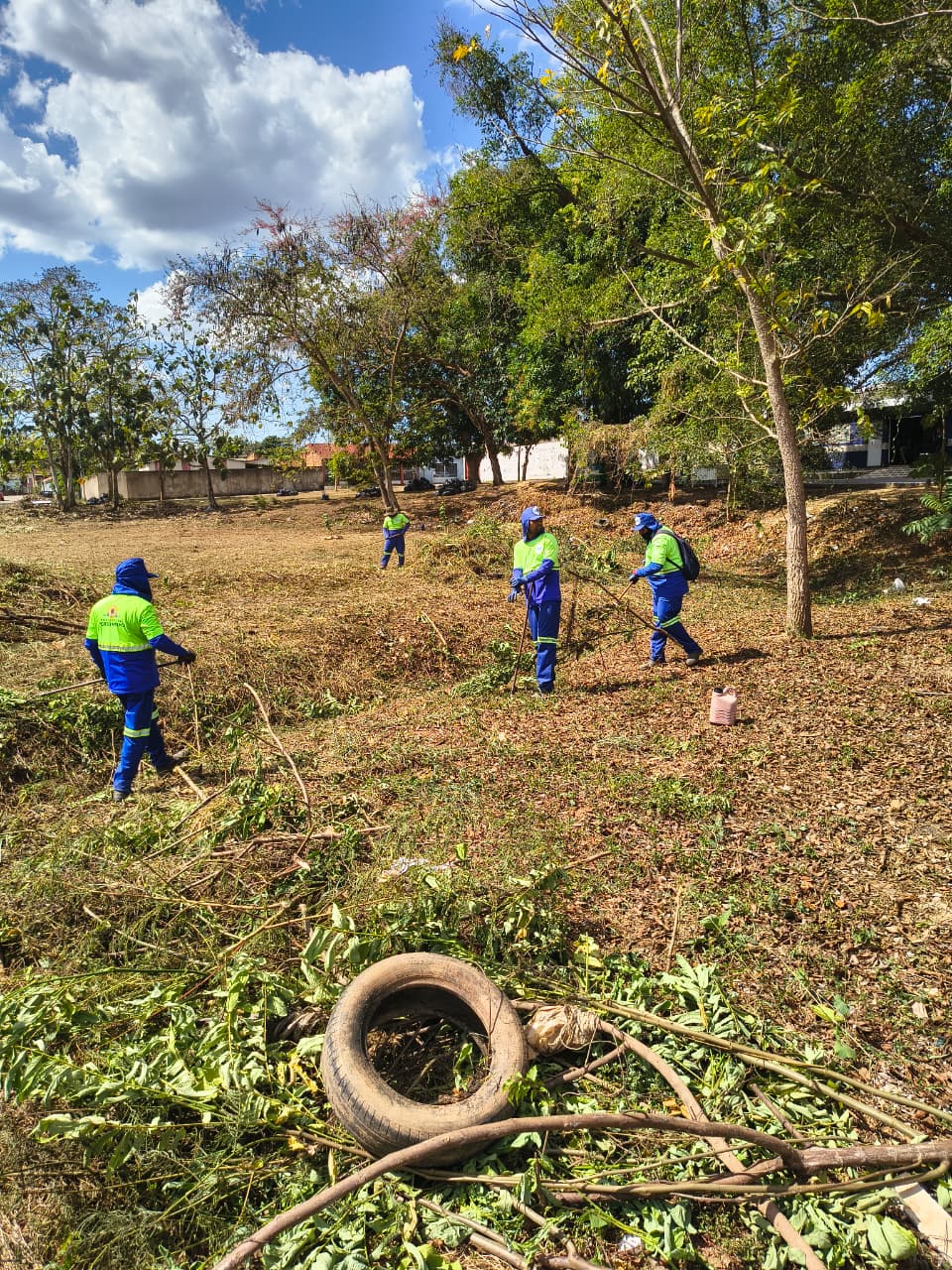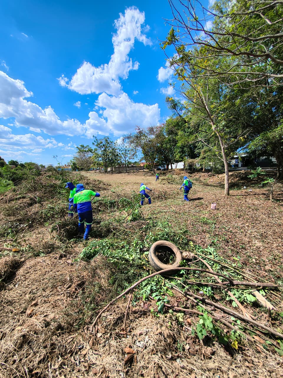 O córrego, a céu aberto, vinha sendo utilizado como ponto de descarte irregular de resíduos sólidos, além de estar tomado pelo mato alto, o que gerava sérios riscos à saúde da população e comprometia a qualidade de vida dos moradores da região.