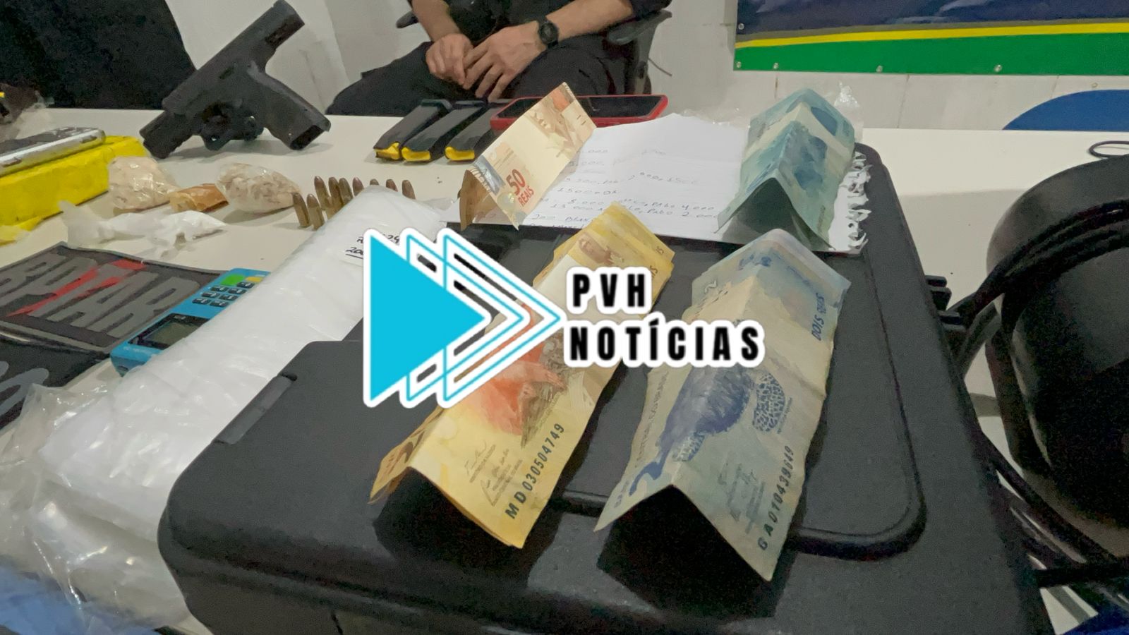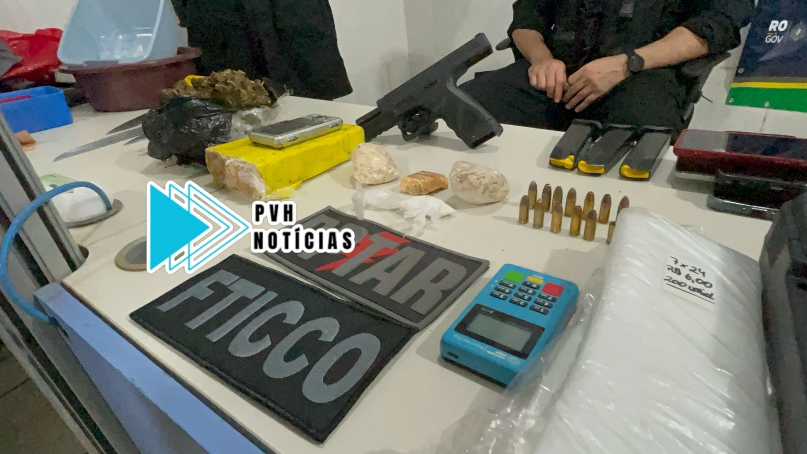 Dentro da casa que genro e sogro moram foram apreendidos um tijolo de crack e outro de skunk, além de porções das mesmas drogas, dinheiro, uma pistola calibre 9mm com munições e objetos de procedência duvidosa.