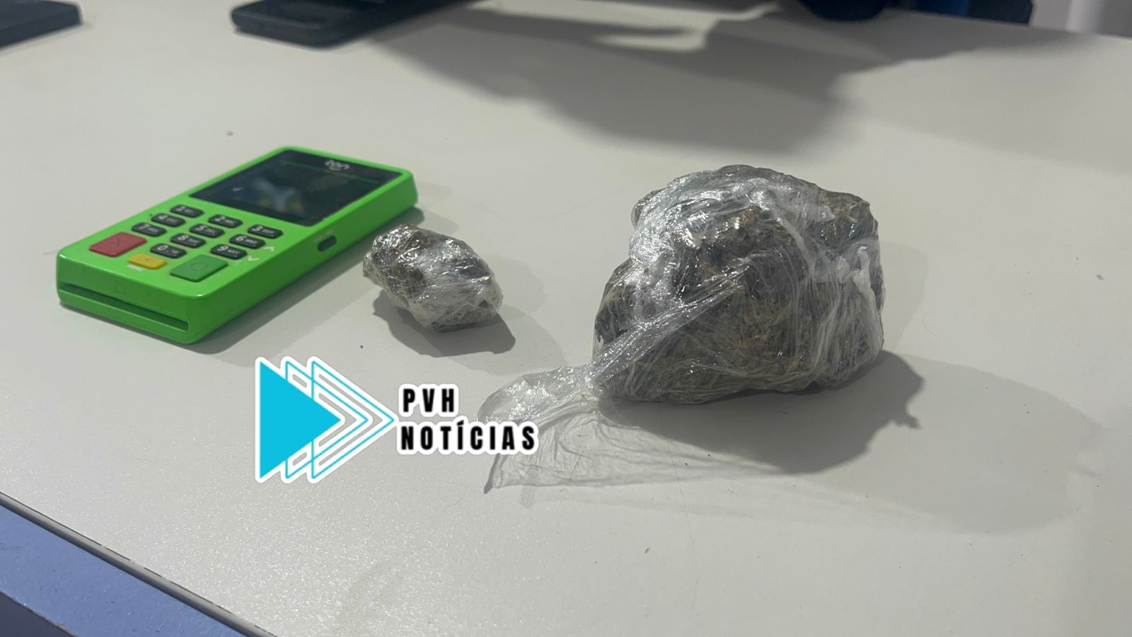 Na chegada a equipe avistou o indivíduo em atitudes suspeitas em frente de um apartamento e fez a abordagem. Dentro do imóvel os policiais encontraram duas porções de maconha e uma máquina de cartão.