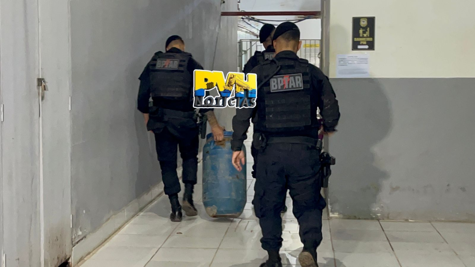 Durante buscas pelo terreno foi encontrado um caderno com anotações do tráfico, e um barril de cor azul entre algumas bananeiras. Dentro foram localizados diversos tijolos e porções de entorpecentes, além de R$14.150,00 em espécie.