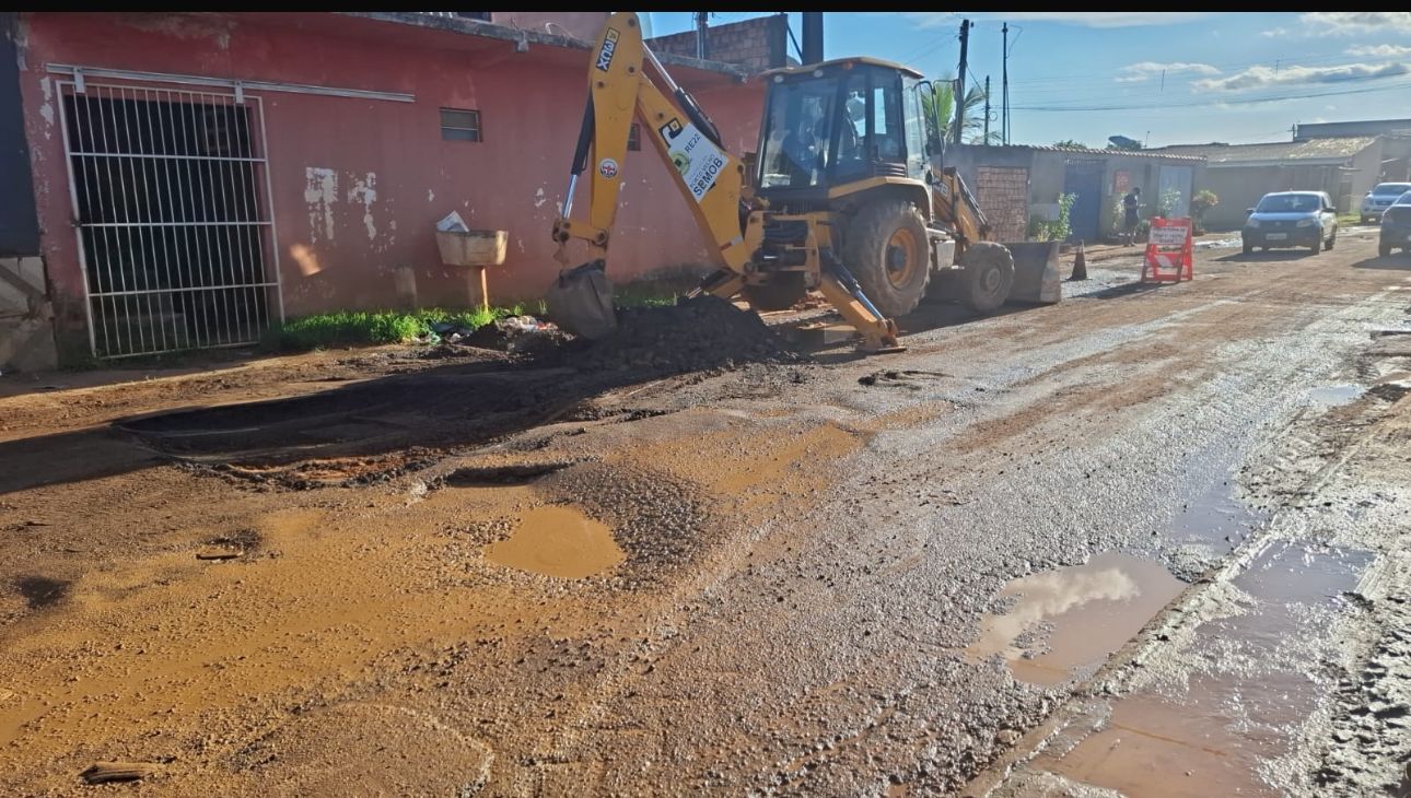 Semob realiza reparo em via no Bairro Castanheira a pedido do vereador Edimilson Dourado