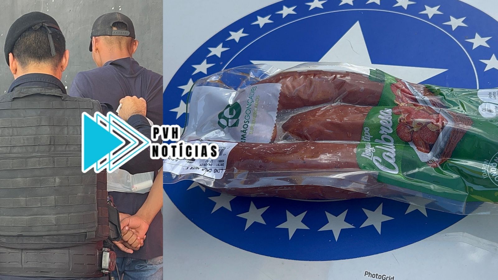 Segundo a PM, fiscais da loja observaram pelas câmeras de segurança, quando o suspeito pegou um pacote contendo duas calabresas grande e uma pequena, e tentou sair sem pagar.