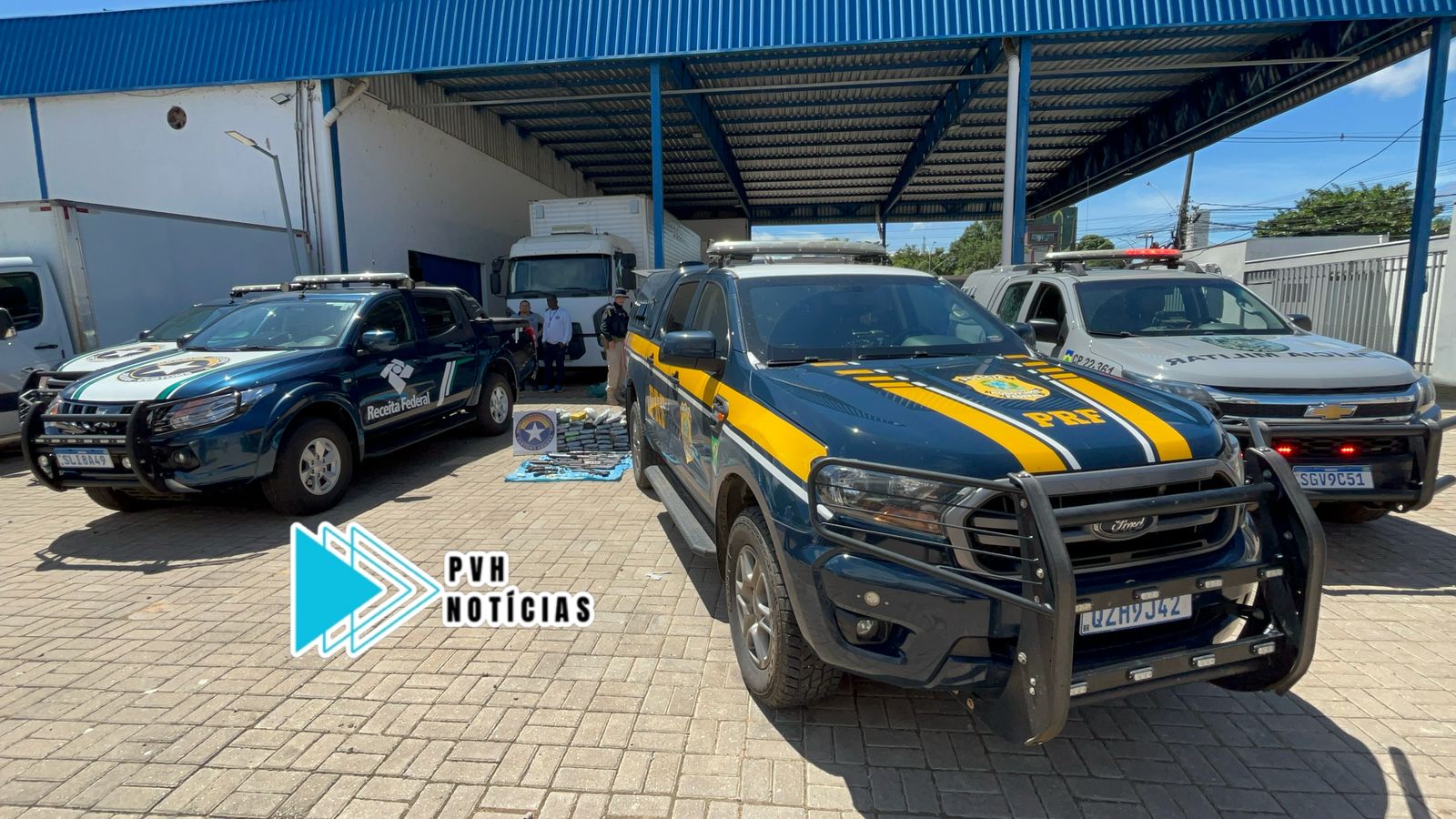 Uma operação envolvendo Agentes da Receita Federal e PRF nesta quinta-feira (27), resultou na apreensão de um arsenal de armas e drogas na BR-319 após a ponte sobre o Rio Madeira em Porto Velho.