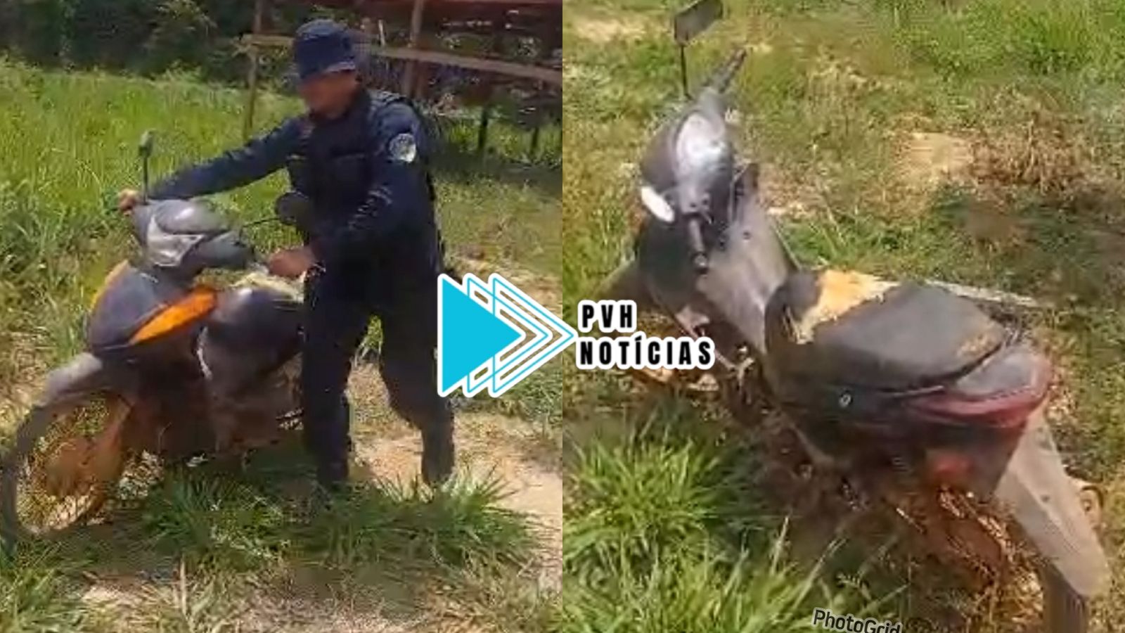 A equipe recebeu denúncias sobre o paradeiro do veículo que teria sido roubado em Porto Velho, e na chagada viu quando o suspeito saiu correndo e conseguiu fugir pelo matagal, não sendo localizado.