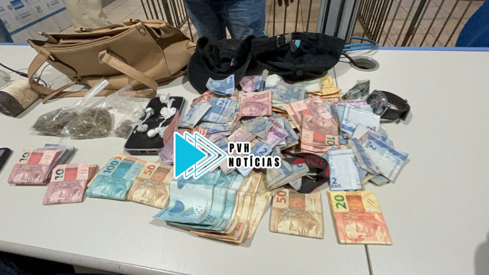 Durante revista no imóvel os policiais fizeram abordagem do proprietário e outros quatro indivíduos, depois encontraram drogas, objetos de procedência duvidosa e muito dinheiro.
