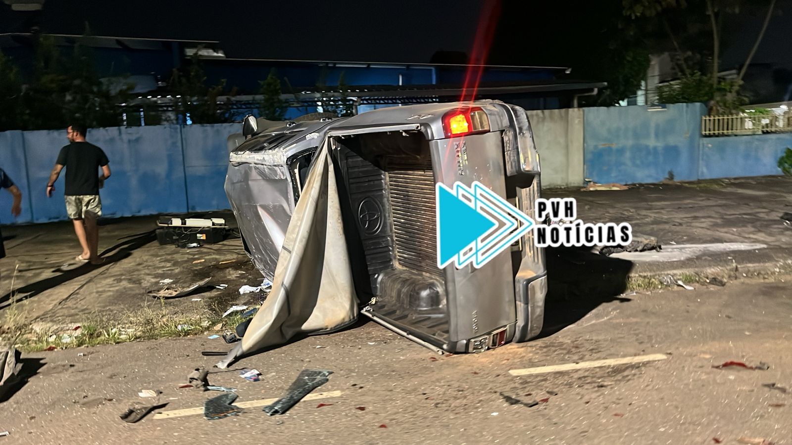 Um grave acidente envolvendo uma caminhonete Hilux e um Renaut Kwid na noite desta quarta-feira (25), deixou três homens feridos no cruzamento da Avenida Abunã com Guanabara, centro de Porto Velho.