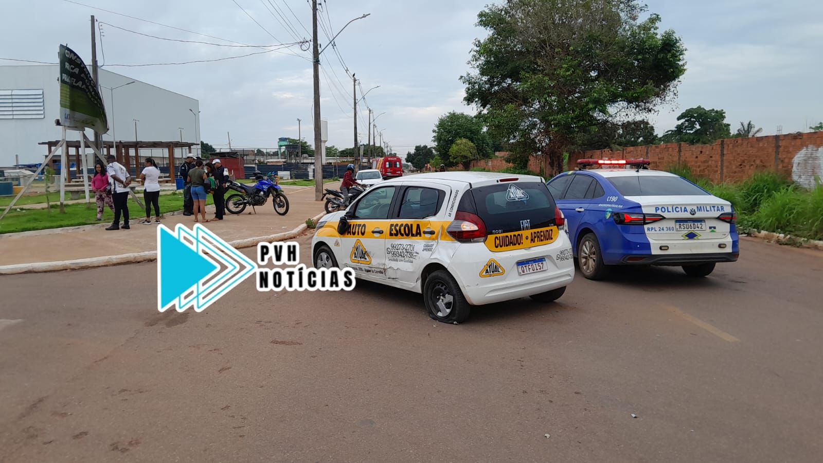 URGENTE: Acidente entre carro de auto-escola e moto deixa dois feridos na zona leste