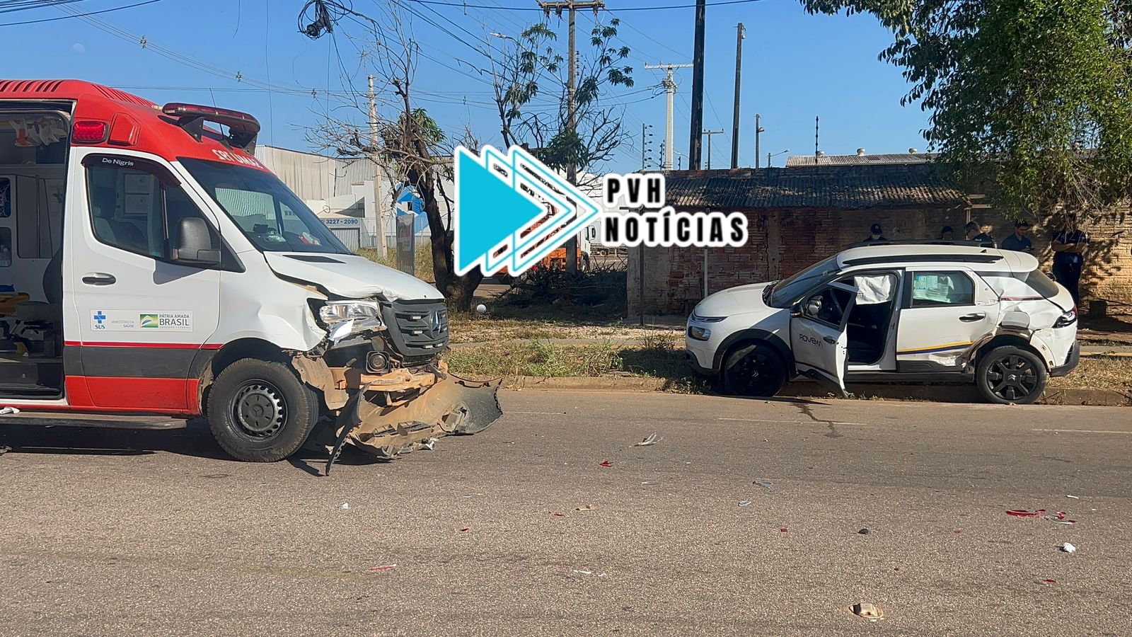 A forte batida entre uma ambulância do Samu e um carro foi registra na manhã desta segunda-feira (14), no cruzamento das Ruas Pau Ferro com Peroba, zona sul de Porto Velho.
