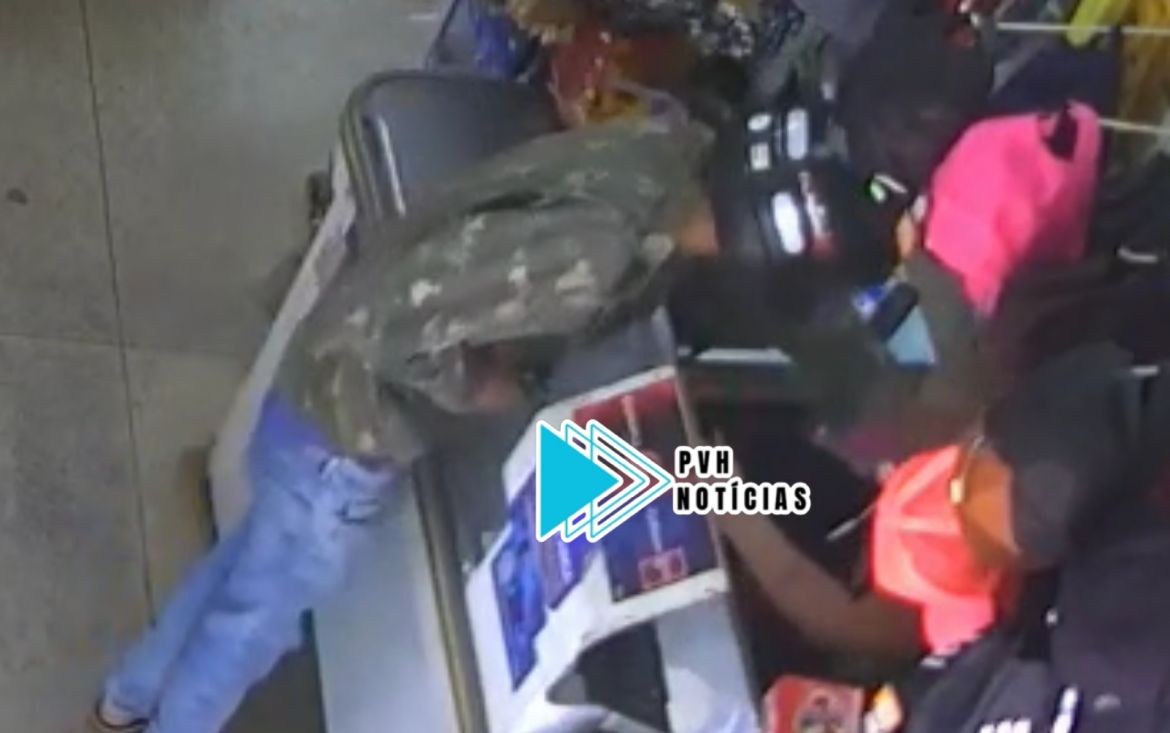 Dois criminosos foram filmados durante um assalto ocorrido na manhã desta terça-feira (03), em um mercado localizado na Rua Mário Andreazza com Rua Antônio Fraga Moreira, bairro JK em Porto Velho.