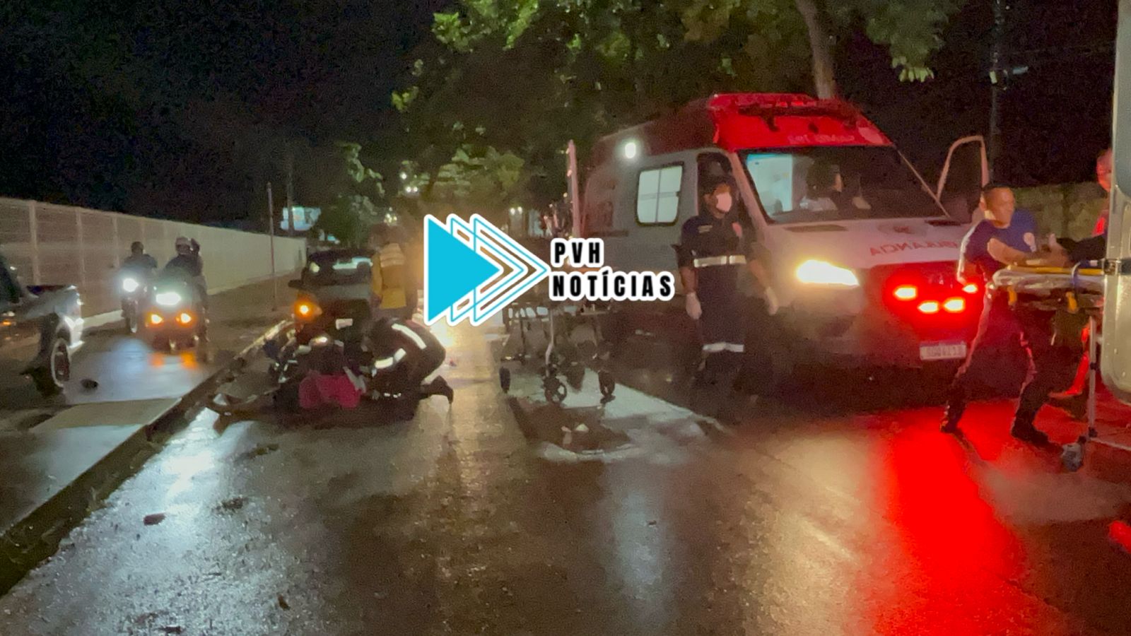 Uma forte batida entre duas motos na noite deste domingo (30), deixou três pessoas feridas na Avenida Mamoré, bairro Três Marias em Porto Velho.