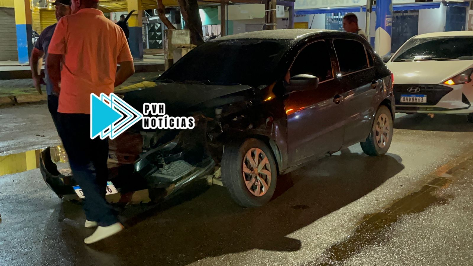 Uma forte colisão entre dois carros na noite deste sábado (29), deixou um rastro de destruição no cruzamento das Ruas Euclides da Cunha com João Alfredo, bairro Cai N’água em Porto Velho.