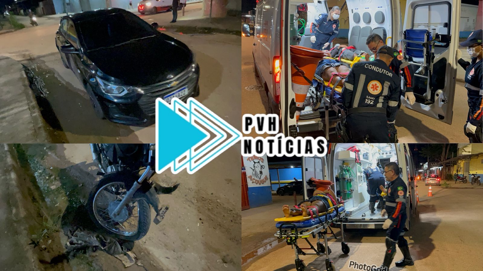 Uma forte colisão entre carro e moto na noite desta quarta-feira (10), deixou um casal ferido no cruzamento Rua dos Andrades com Petrolina, bairro Mariana em Porto Velho.
