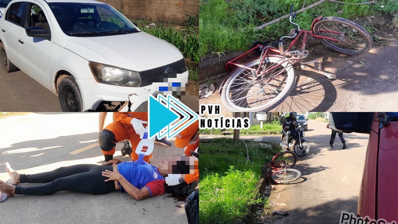 Uma mulher de 42 anos ficou gravemente ferida após ser atropelada por um carro na manhã desta quinta-feira (29), no cruzamento das Ruas Eça de Queiroz com Barão dos Solimões, bairro Mariana em Porto Velho.