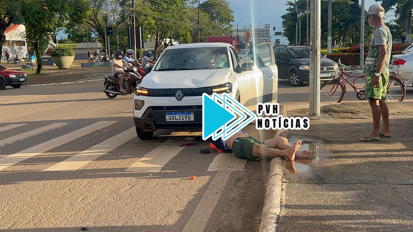 Um ciclista ficou gravemente ferido após ser atropelado por um carro modelo Renaut Kwid na tarde desta terça-feira (13), no cruzamento das Avenidas Jorge Teixeira com Carlos Gomes, em Porto Velho.