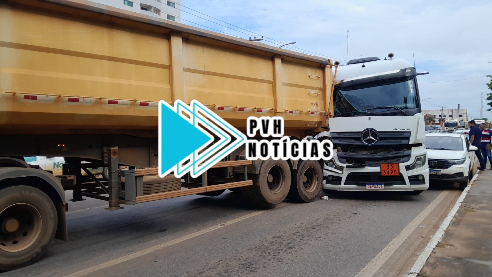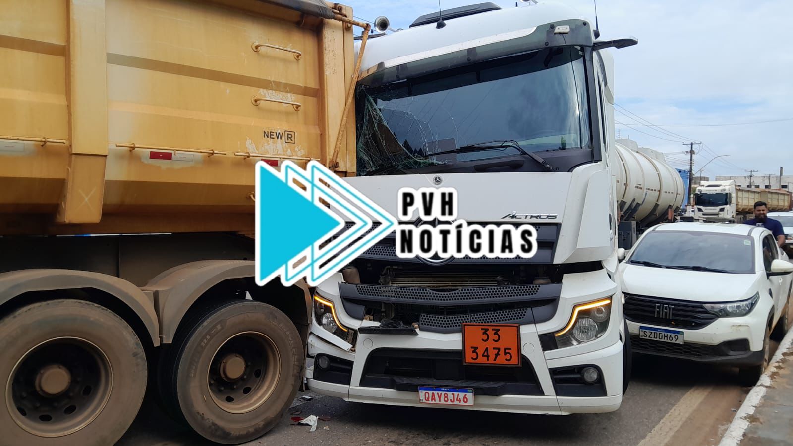 O acidente que envolveu duas carretas e um carro modelo Fiat Strada, aconteceu na manhã desta sexta-feira (24), na Avenida Jorge Teixeira com Tiradentes, bairro Embratel em Porto Velho.