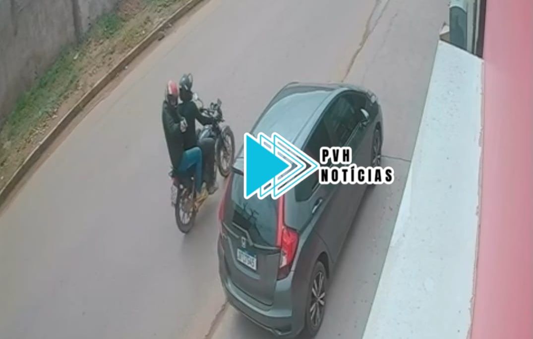 Tivemos acesso a imagens de uma câmera de segurança que registraram quando dois indivíduos passam de moto em frente ao estacionamento comercial, e o garupa armado faz um disparo em direção a loja, atingindo a porta de vidro, depois a dupla foge.