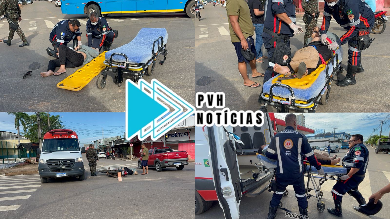 Uma jovem gestante de 8 meses, sofreu um grave acidente de moto na manhã desta quarta-feira (01), no cruzamento das Ruas Rogério Weber com João Alfredo, bairro Cai N’água em Porto Velho.