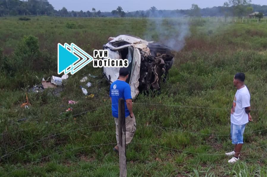 URGENTE: Grave acidente com capotamento de caminhonete deixa vítima presa às ferragens na BR-319