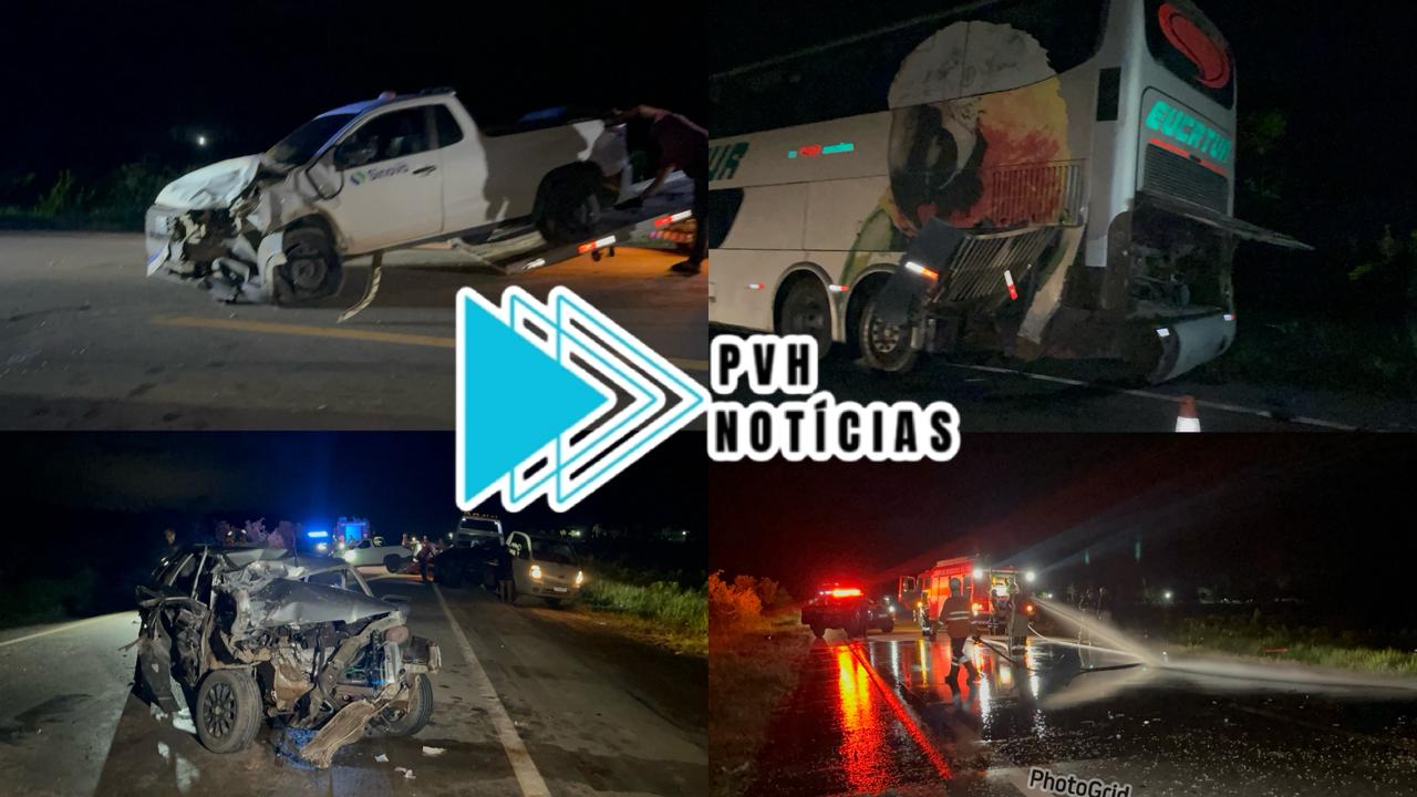 Um grave acidente entre um ônibus da Eucatur e dois carros na noite desta quarta-feira (29), deixou um homem ferido no km45 da BR-319, sentido Humaitá-AM.