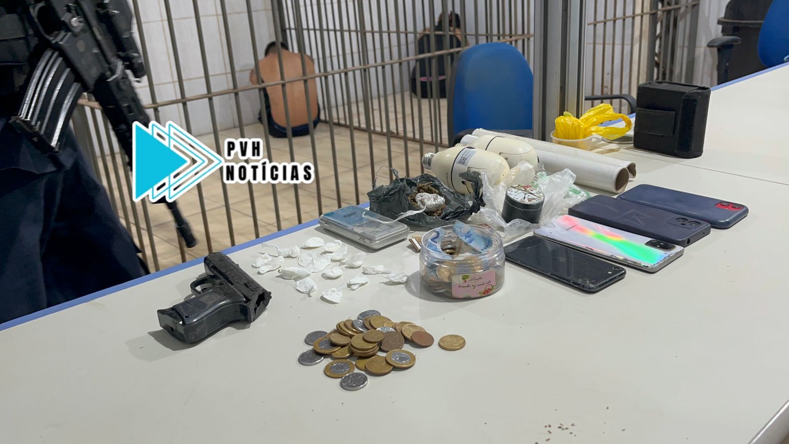 No local os policiais fizeram a abordagem dos suspeitos e localizaram porções de maconha, cocaína, celulares de procedência duvidosa, câmeras de monitoramento e dinheiro.