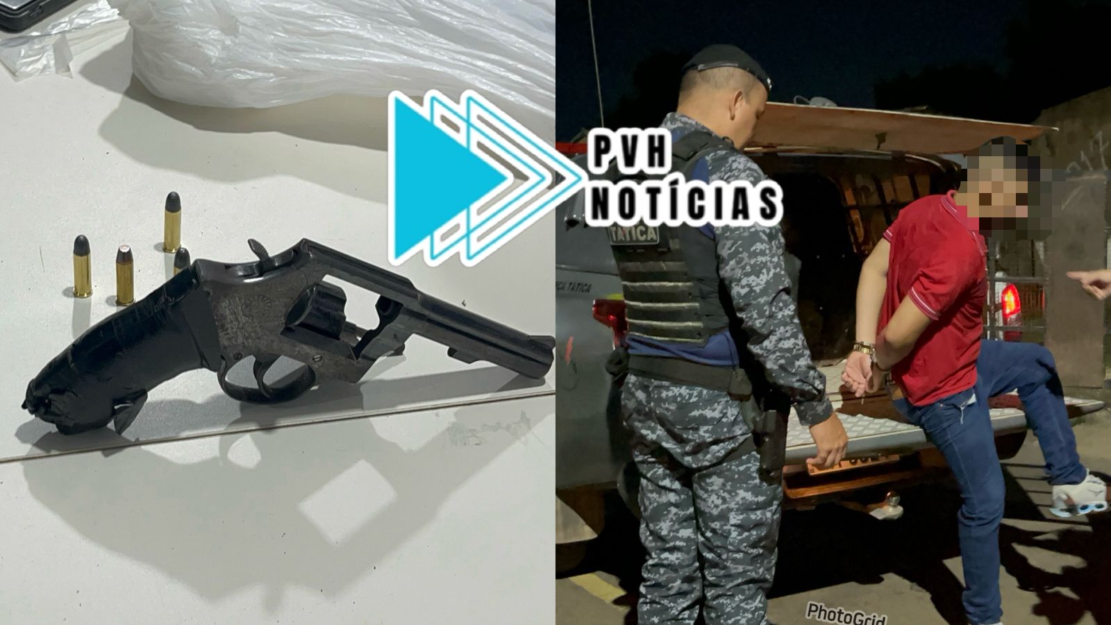 Quando equipes da Força Tática chegaram, encontraram o suspeito escondido em uma casa na mesma rua, local onde ele foi preso e um revólver foi apreendido.