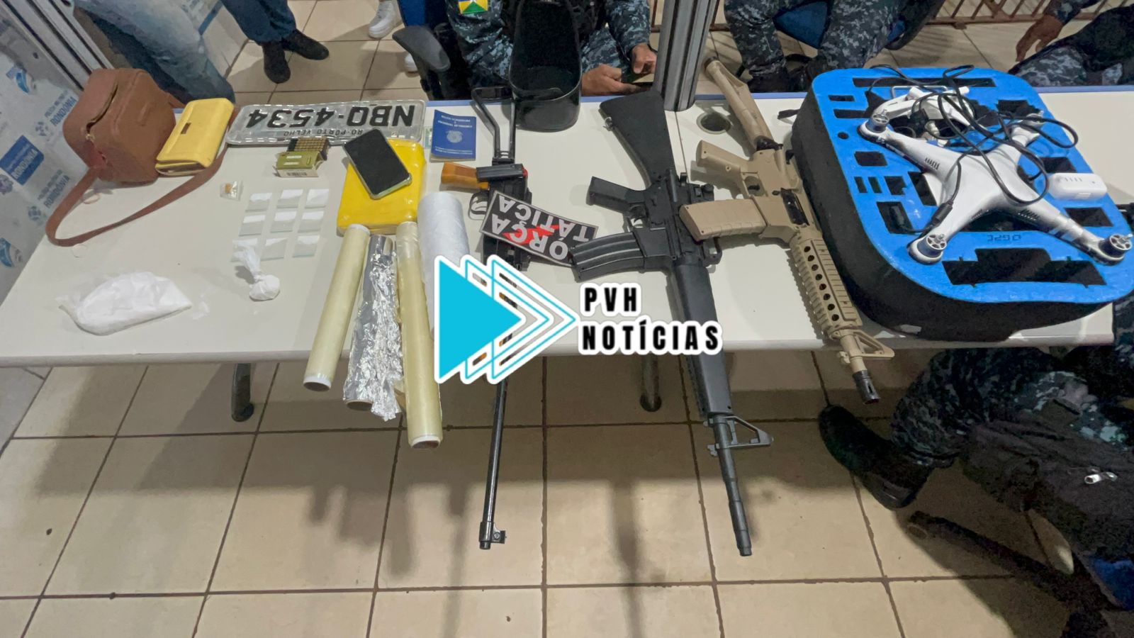 Dentro da casa foram encontradas mais drogas, duas réplicas de fuzil, um drone que era usado para monitorar a PM e uma carabina com diversas munições.