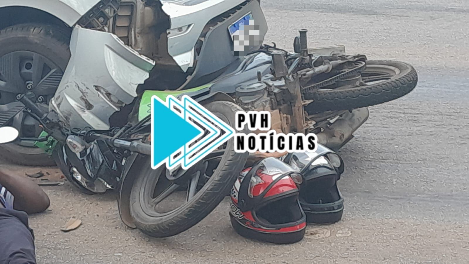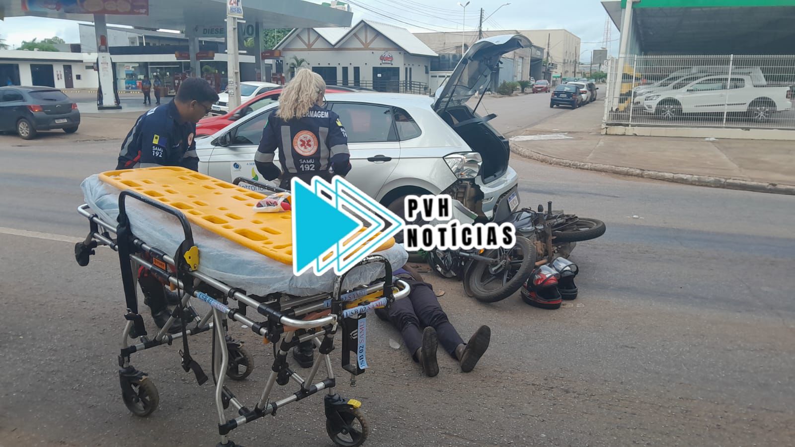 Uma forte colisão entre carro e moto na manhã desta quarta-feira (11), deixou um moto aplicativo ferido no cruzamento das Avenidas Jorge Teixeira com 7 de Setembro em Porto Velho.
