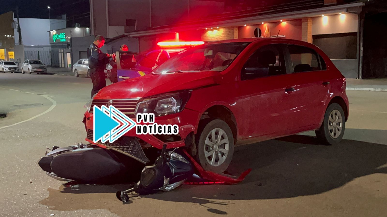 Com a batida a moto chegou a ficar embaixo do carro e o casal com várias lesões. O Corpo de Bombeiros prestou socorro às vítimas e encaminhou para o Hospital João Paulo II.