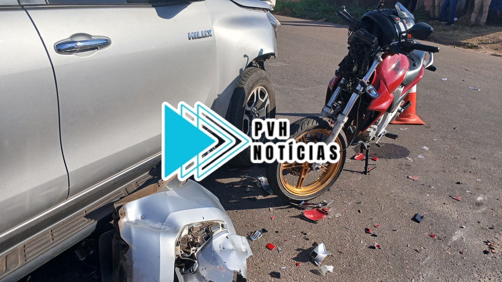 O grave acidente entre carro e moto deixou um homem ferido na manhã desta terça-feira (15), no cruzamento das Ruas Caparari com Piratininga, bairro Lagoa em Porto Velho.