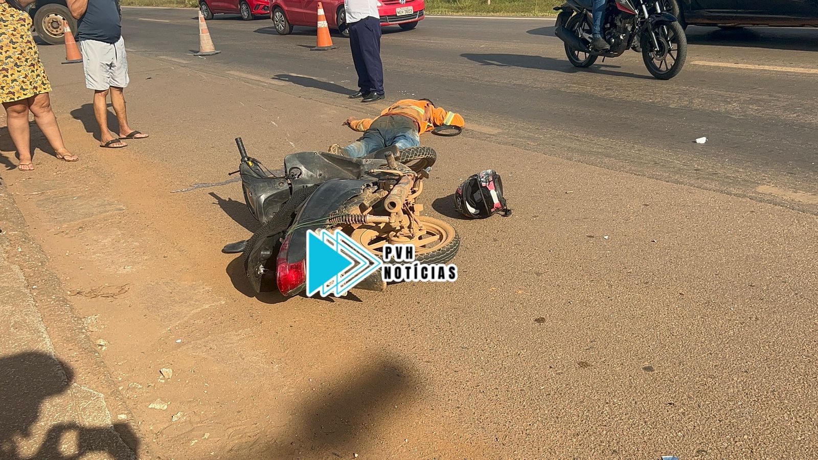 O grave acidente deixou um motociclista ferido na tarde desta sexta-feira (13), na Rua da Beira, bairro Três Marias em Porto Velho.