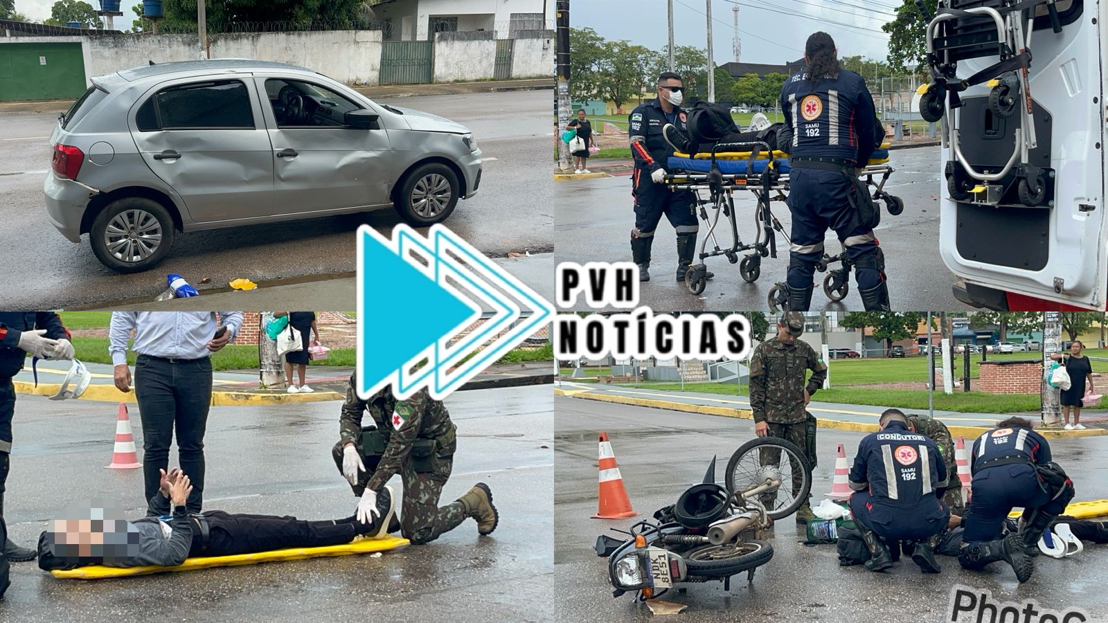 URGENTE: Motociclista fica ferido em grave acidente na frente da 17ª Brigada de Selva
