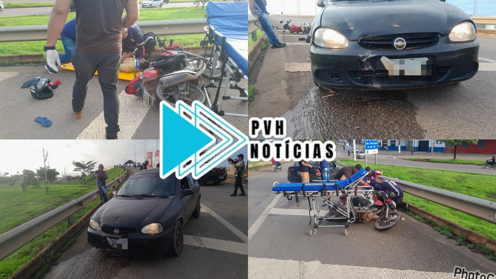 O grave acidente envolvendo carro e moto ocorreu na manhã desta sexta-feira (02), no elevado do Trevo do Roque em Porto Velho.
