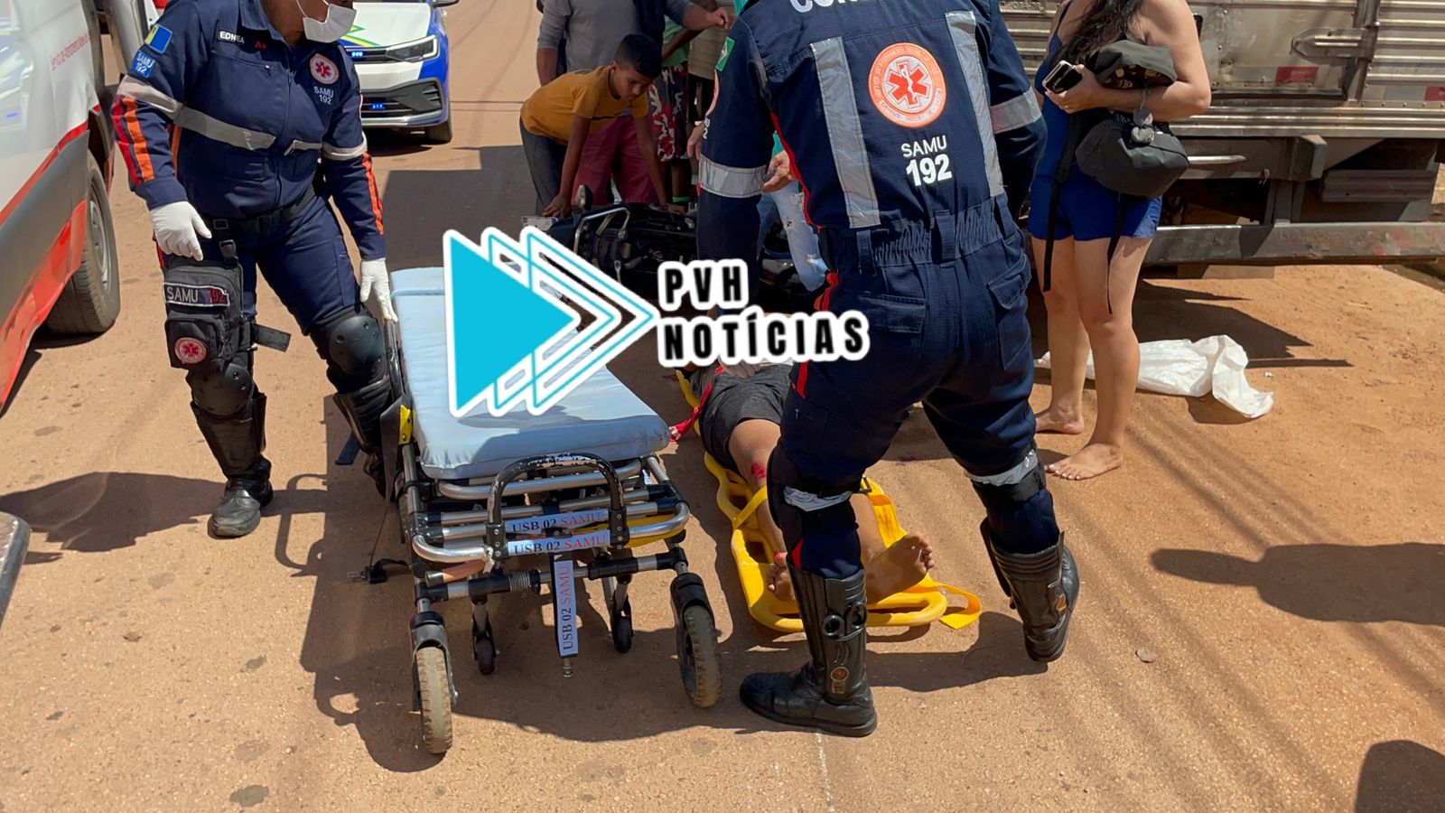Um homem ficou gravemente ferido no final da manhã deste sábado (07), em um acidente de moto na Avenida Amazonas próximo a Rua Goianésia, bairro Jardim Santana em Porto Velho.