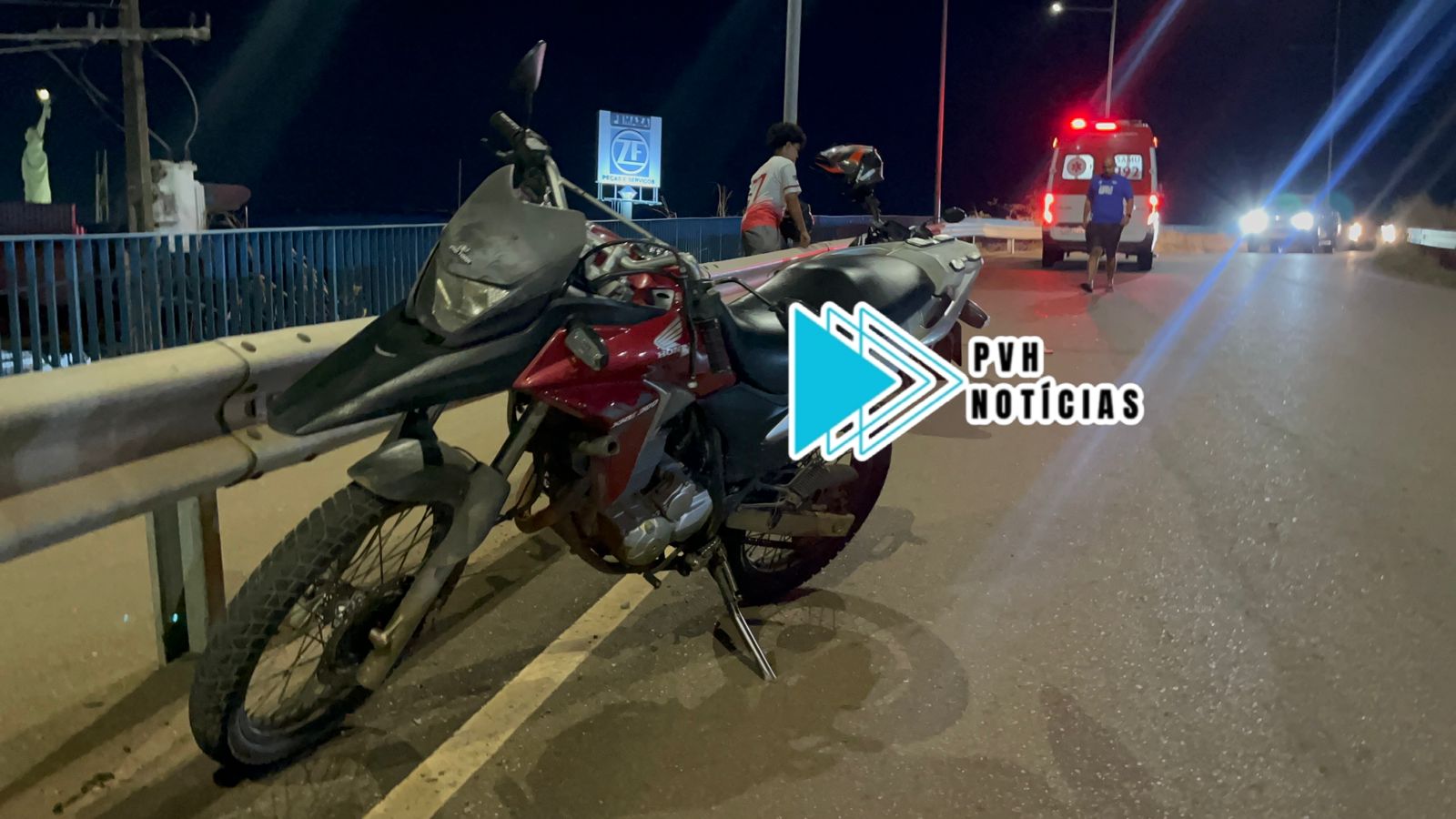 Um homem sofreu fratura exposta após sofrer um acidente em cima do viaduto que liga a Rua Três e Meio com Avenida Rio de Janeiro, bairro Nova Porto Velho.
