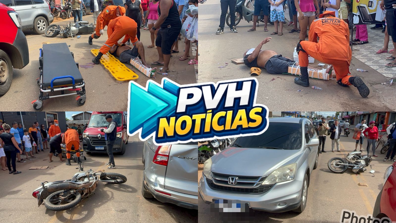 Um homem de aproximadamente 55 anos ficou gravemente ferido após batida entre moto e carro na manhã desta sexta-feira (03), no cruzamento da Avenida José Amador dos Reis com Benedito Inocêncio, bairro JK, em Porto Velho.