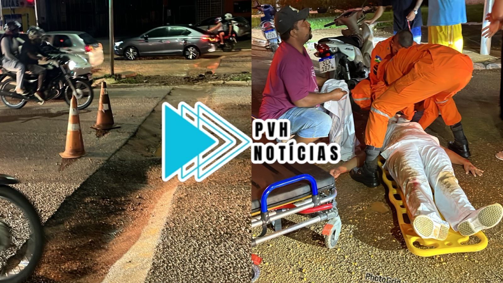 URGENTE: Motociclista sofre queda em buraco de obra deixado na frente do Detran