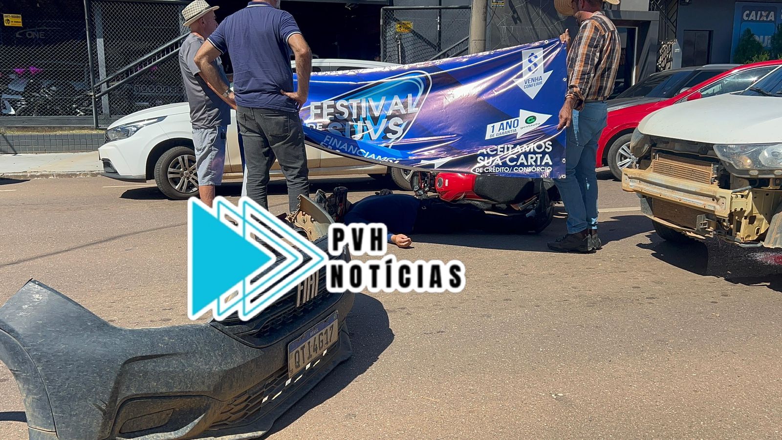 Segundo testemunhas, o motorista da Strada, saiu de um estacionamento e atingiu o motociclista que seguia na preferencial, derrubando a vítima que ficou desacordada alguns minutos.