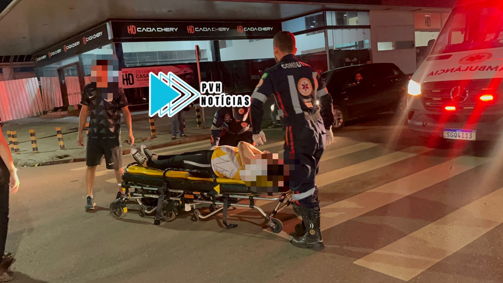 Informações apuradas no local dão conta que os veículos seguiam na Rua Rafael Vaz e Silva sentido Amazonas, quando o motorista do carro elétrico fez a conversão a esquerda (proibido) na Pinheiro Machado, e derrubou o casal que passava de moto ao lado.