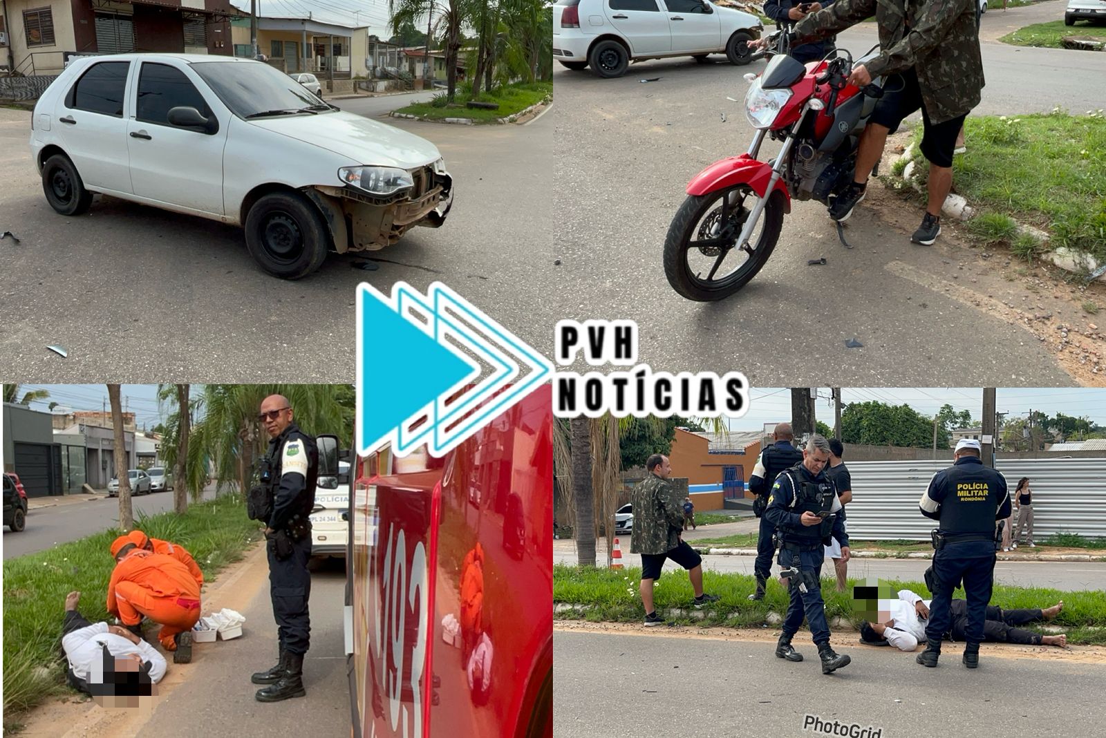 A vítima com suspeita de fratura na perna direita foi amparada por populares. A PM acionou o resgate do Corpo de Bombeiros para atendimento da vítima, que foi socorrida ao Hospital João Paulo II.
