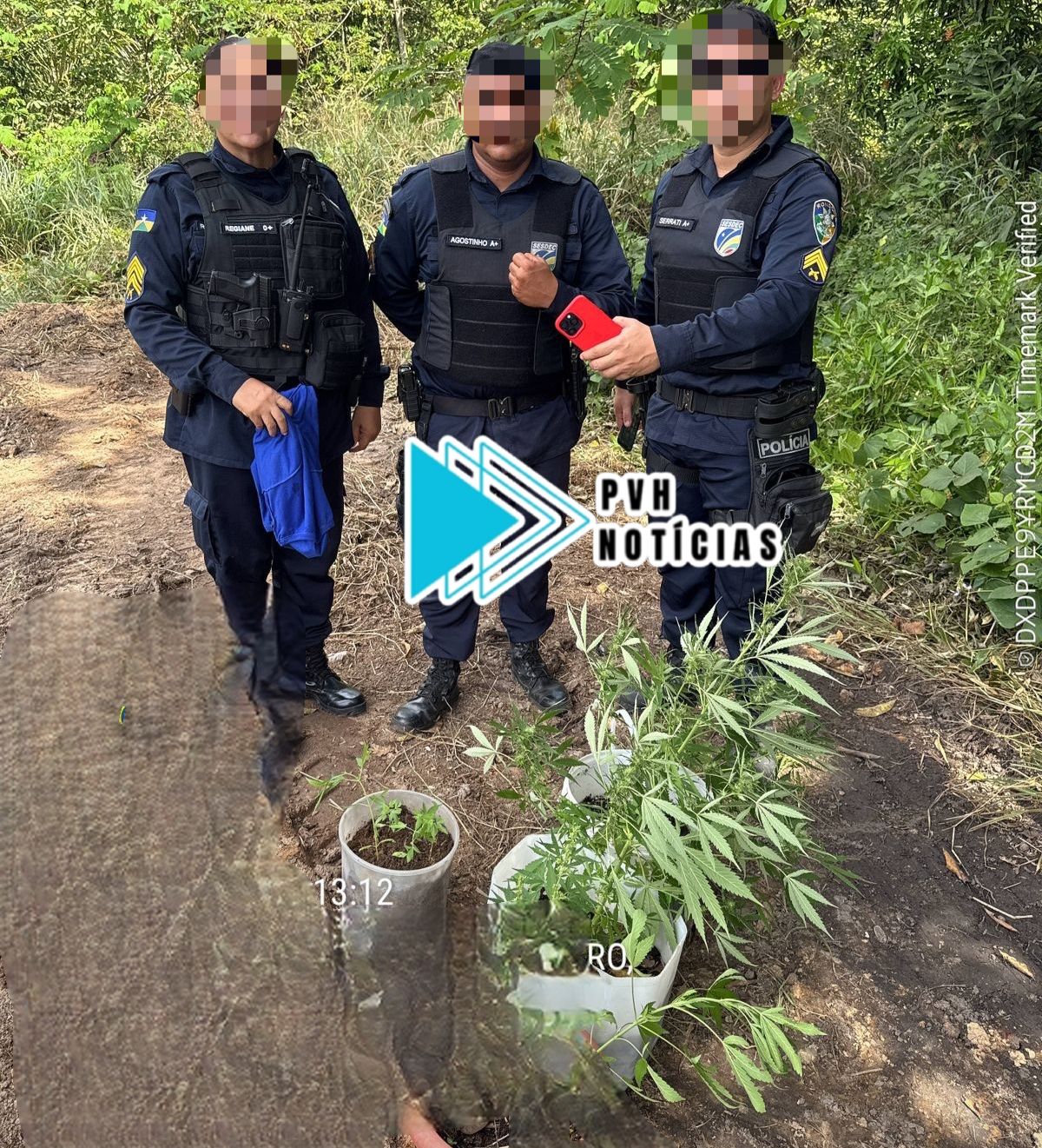 Policiais do 1° Batalhão na tarde desta sexta-feira (23), recuperaram dois celulares roubados e descobriram uma plantação de maconha no residencial Santa Bárbara, Estrada do Santo Antônio em Porto Velho.