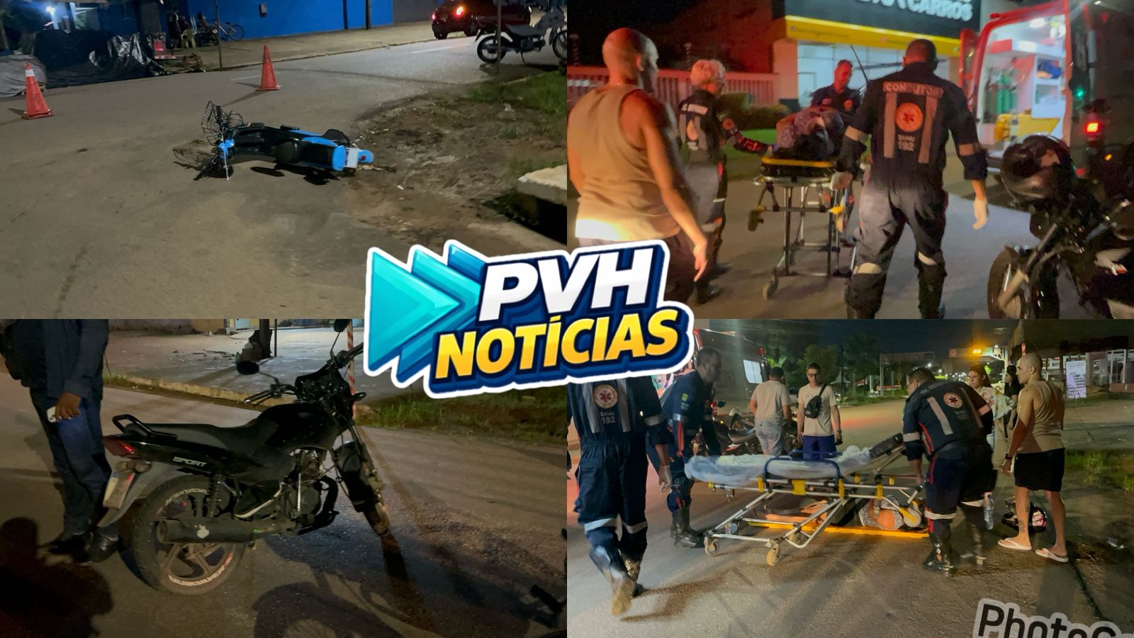 Dois homens e uma mulher ficaram feridos após batida entre duas motos no final da noite desta sexta-feira (10), no cruzamento das Ruas Jaci-Paraná com Buenos Aires, bairro Nova Porto Velho.