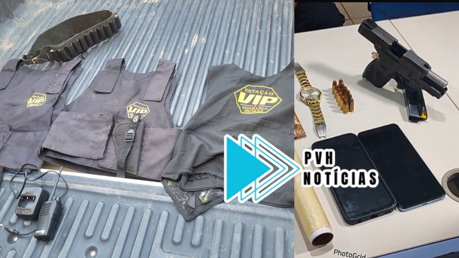 Com eles foram encontrados coletes balísticos e uma pistola com munições. Todos foram encaminhados ao Departamento de Flagrantes.