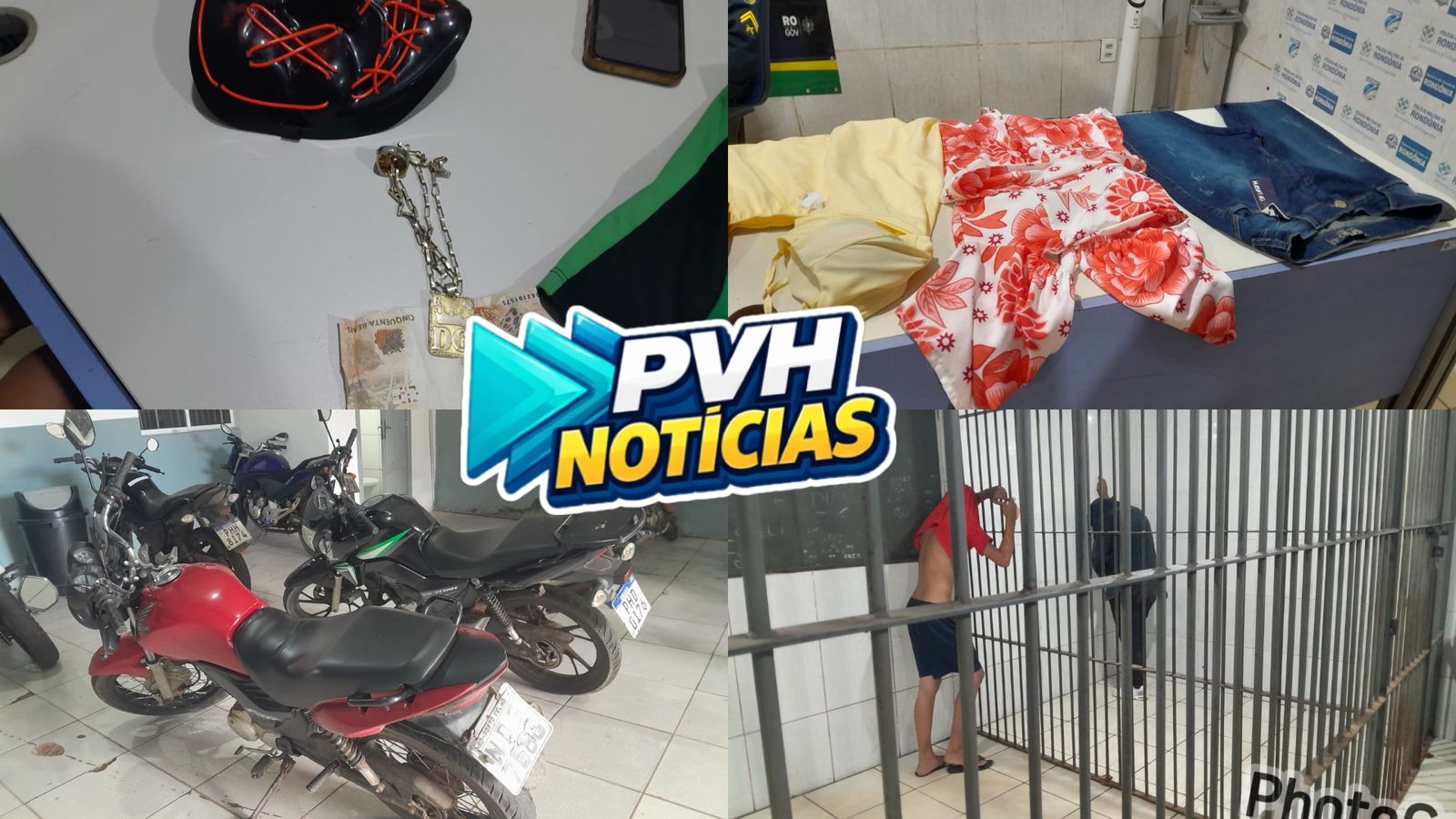No local também foram abordados a mãe do suspeito e outro homem de 44 anos, além de serem encontradas peças de roupas furtadas do estabelecimento comercial, uma máscara e duas motos.