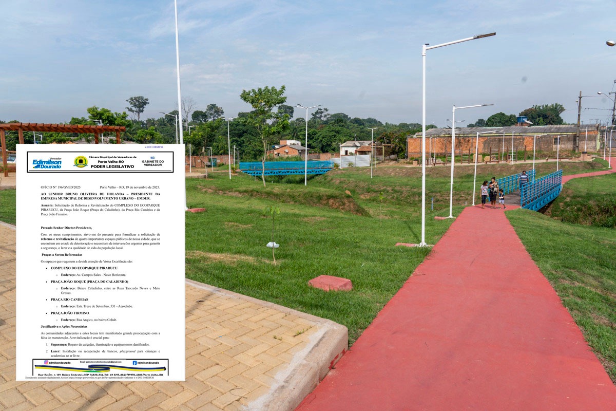 Em mais uma ação que reforça sua atuação firme e constante em defesa das comunidades de Porto Velho, o vereador Edimilson Dourado (União Brasil) encaminhou o Ofício nº 196/GVED/2025 à Empresa Municipal de Desenvolvimento Urbano (Emdur), solicitando a reforma e revitalização de quatro importantes espaços públicos da capital. O documento destaca a urgência das intervenções e demonstra o empenho do parlamentar em garantir ambientes mais seguros e adequados para o lazer da população