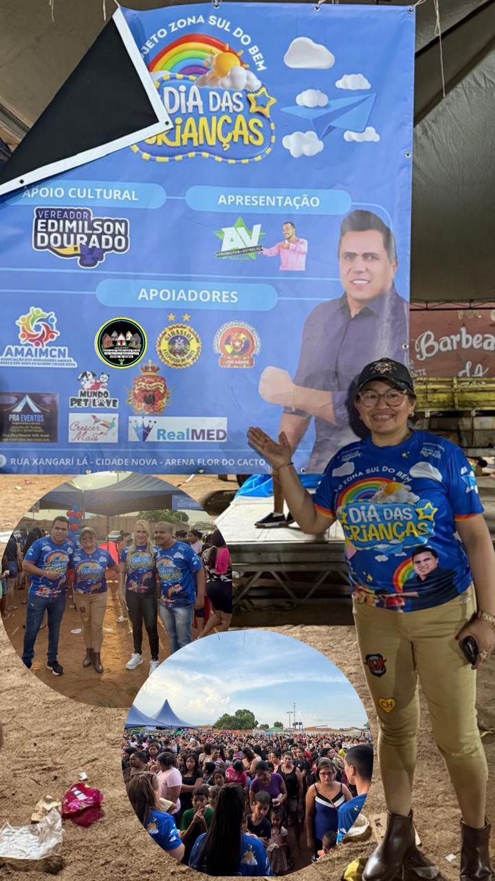 O sábado (4) foi de muita alegria e diversão para milhares de crianças e famílias da Zona Sul de Porto Velho. A Arena Flor de Cacto, localizada na Rua Xangri-lá, bairro Cidade Nova, recebeu uma grande festa em comemoração ao Dia das Crianças, promovida pelo vereador Edimilson Dourado.