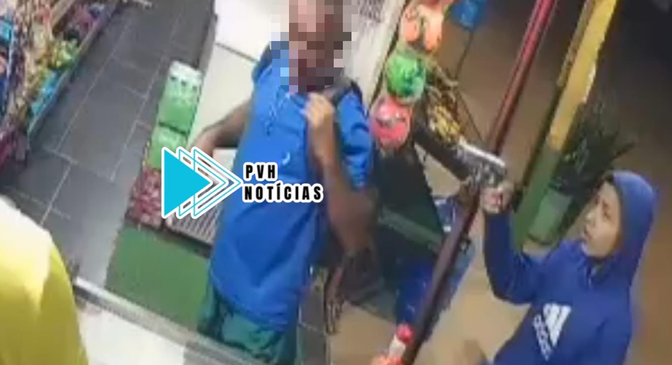 O roubo registrado por uma câmera de segurança ocorreu na noite desta segunda-feira (23), na Rua Joaquim da Rocha, bairro Castanheira, zona sul de Porto Velho.