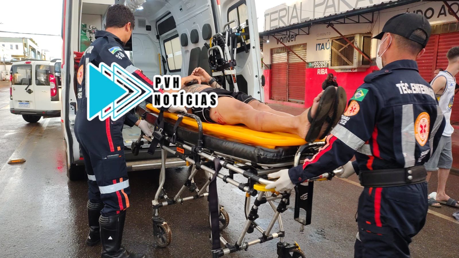 Com a queda a vítima sofreu suspeita de fratura na perna e foi socorrido pelo Samu ao Hospital João Paulo II. A PM foi chamada para fazer o registro.