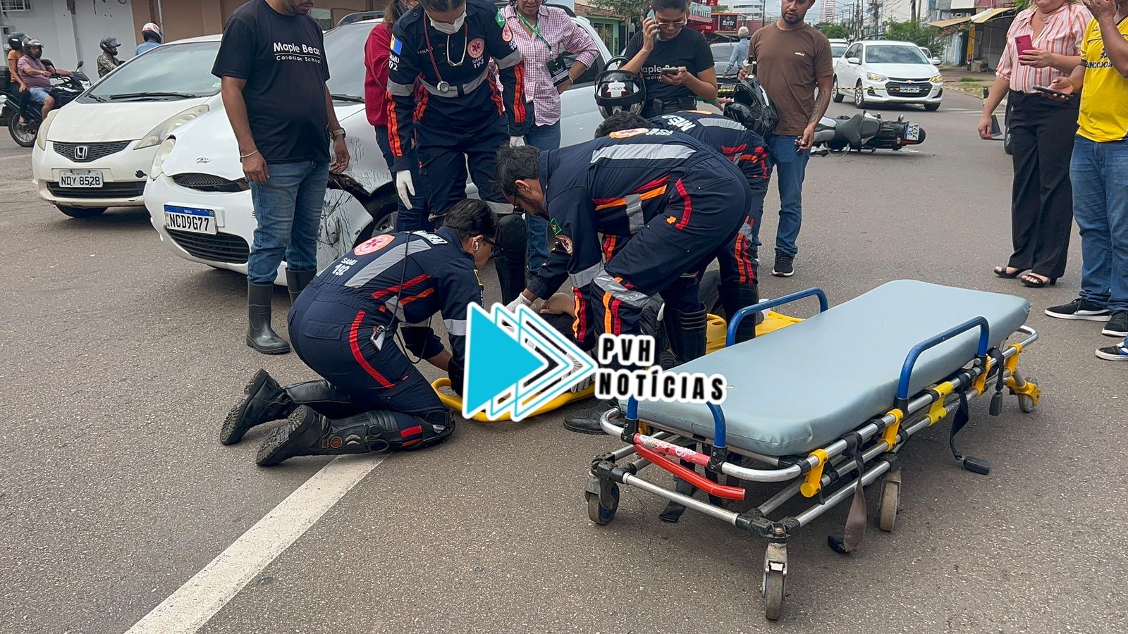 O grave acidente envolvendo carro e uma moto MT07 na tarde desta quarta-feira (25), deixou um homem bastante ferido na Avenida Calama com Rua José Bonifácio, bairro Olaria em Porto Velho.