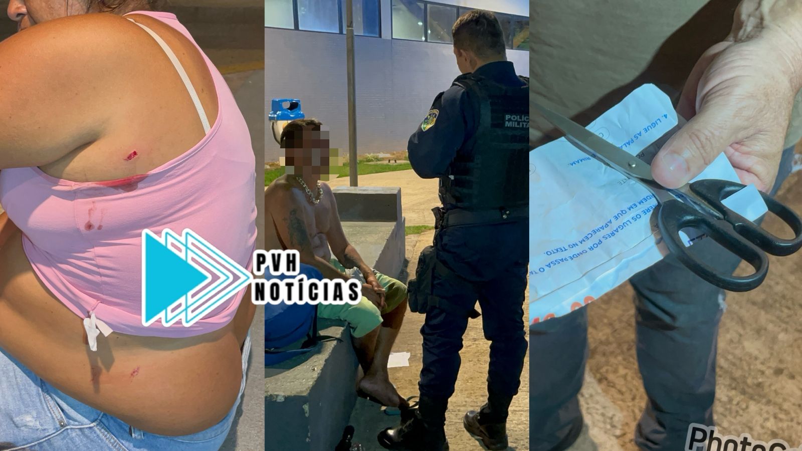 Um Policial Civil que estava com o filho que iria viajar, flagrou a ação e conseguiu fazer a prisão do suspeito e apreender a tesoura usada no crime, até a chegada da PM.