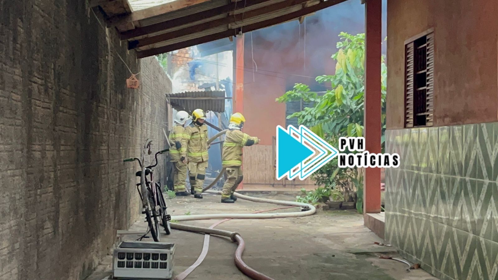 De acordo com testemunhas, vizinhos acionaram o Corpo de Bombeiros depois que viram muita fumaça saindo dos fundos do imóvel onde havia uma estrutura de madeira.